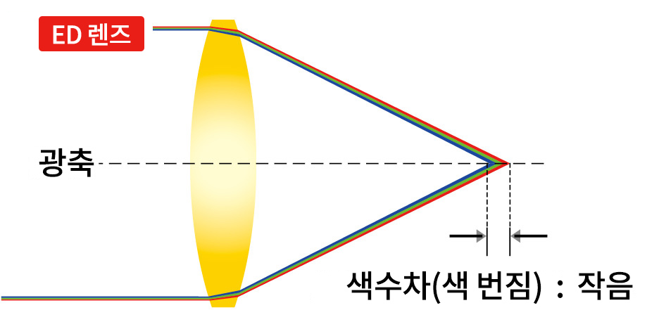 ED 렌즈의 색수차 보정 효과와 비구면 렌즈의 각 수차 보정 효과를 하나의 렌즈로 얻을 수 있는, 뛰어난 묘사 성능을 실현하는 렌즈.