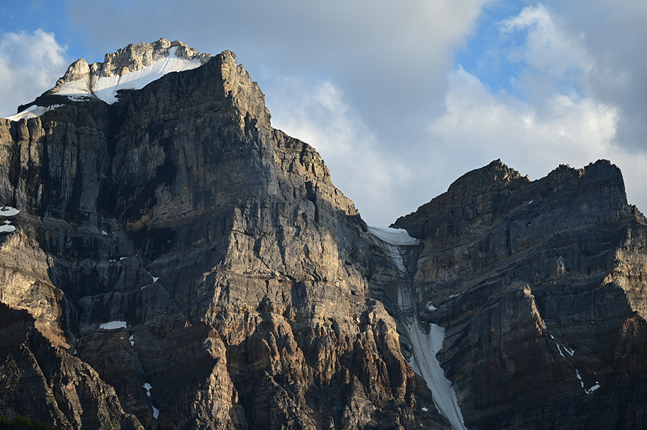 초점 거리 120mm로 가파른 바위 산의 정상 부근에서 촬영한 사진입니다. 대자연이 만들어 낸 바위의 거친 디테일과 곳곳에 남아있는 눈과 얼음의 질감까지 리얼하게 묘사되어 있습니다. 콘트라스트가 낮은 부분도 세세하게 표현되었으며, 산의 형태와 입체감도 자연스럽게 재현되어 있습니다.