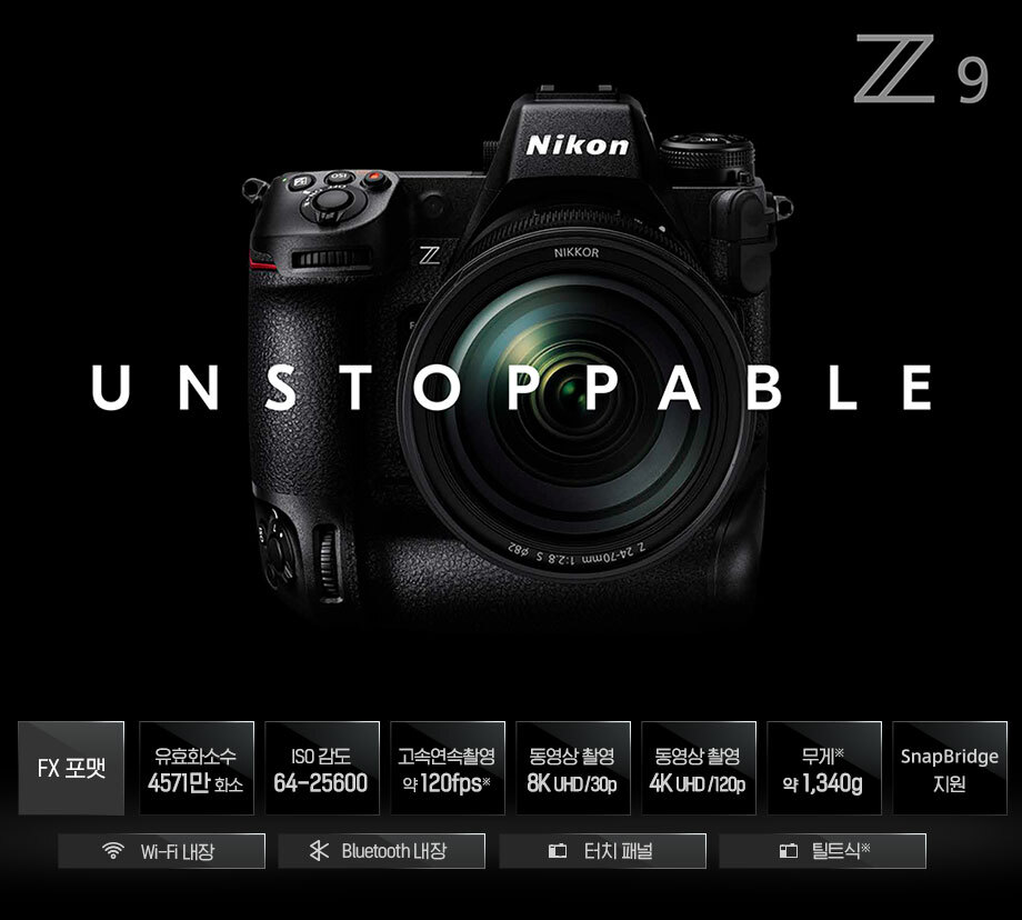 니콘의 Z9은 브랜드 최초의 플래그십 미러리스 카메라로, 사진 및 동영상 촬영 모두에서 혁신적인 성능을 제공하는 제품입니다. 특히 8K 동영상 촬영 기능과 뛰어난 AF 성능, 그리고 45.7MP 풀프레임 센서를 통해 전문가들이 기대하는 높은 성능을 충족시키고 있습니다. 이번 리뷰에서는 Z9의 주요 기능과 성능을 중심으로 살펴보겠습니다.1. 디자인 및 빌드 퀄리티니콘 Z9은 풀프레임 미러리스 카메라 중에서도 상당히 크고 견고한 디자인을 가지고 있습니다. 일체형 그립과 방진·방습 기능 덕분에 험난한 촬영 환경에서도 믿고 사용할 수 있는 제품입니다. 또한, 4축 틸트식 모니터를 탑재하여 다양한 각도에서 촬영할 때도 편리하게 화면을 조정할 수 있습니다. 카메라의 무게는 다소 무겁지만, 그립감이 좋고 조작 버튼이..